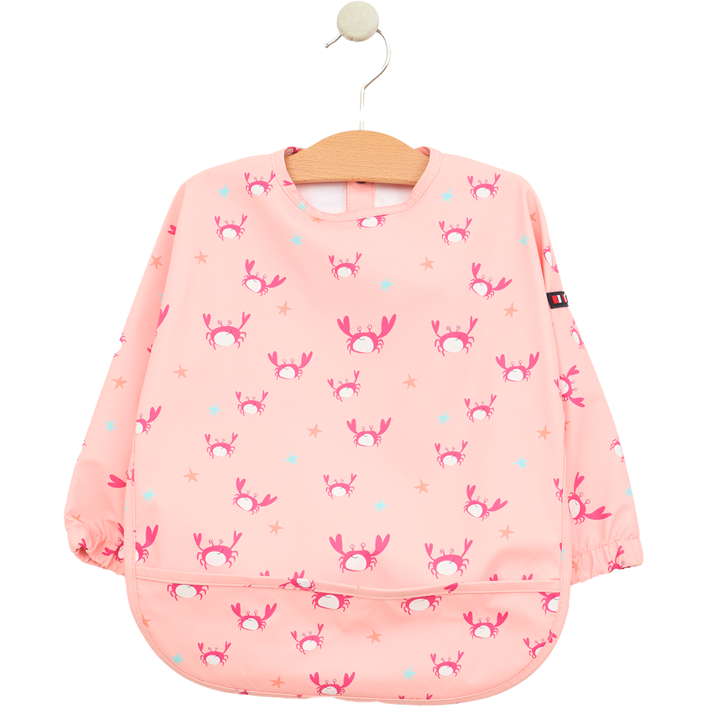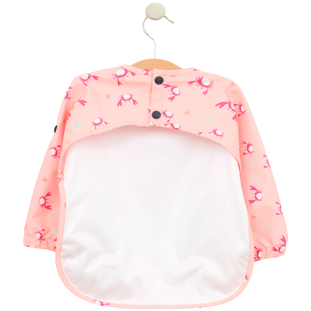 Este babero está pensado para mantener a los pequeños limpios durante las comidas, gracias a su sujeción firme, mangas largas y un bolso frontal conveniente para capturar las migajas.
