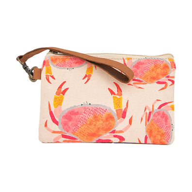 Bolso pequeño confeccionado con algodón suave y adornado con cangrejos. Este clutch es perfecto para los que buscan un toque moderno y divertido en su outfit. Además, cuenta con tirador de cremallera de cuero para poder llevar tus esenciales comodamente.