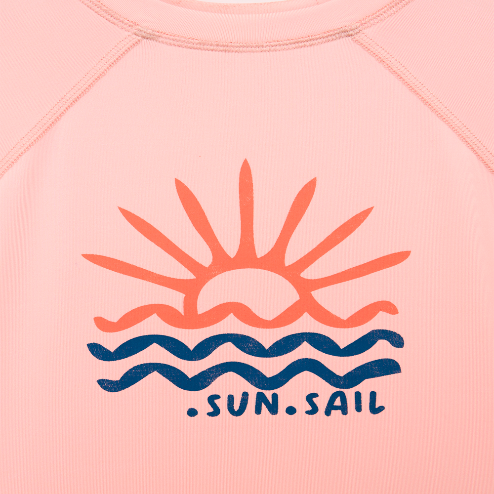 Camiseta junior UVB50 de manga larga que combina protección solar y estilo náutico. Esta camiseta confeccionada por Batela con 88% poliester y 12% spandex bloquea los rayos del sol para proteger la piel de tus hijos.