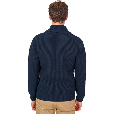 Jersey de lana para hombre con cuello chal y botón con detalle de ancla. Una prenda que combina la elegancia clásica con un toque marítimo distintivo. Este tipo de jersey no solo proporciona calidez y comodidad durante los meses más fríos, sino que también ofrece un estilo atemporal que puede ser tanto casual como formal.