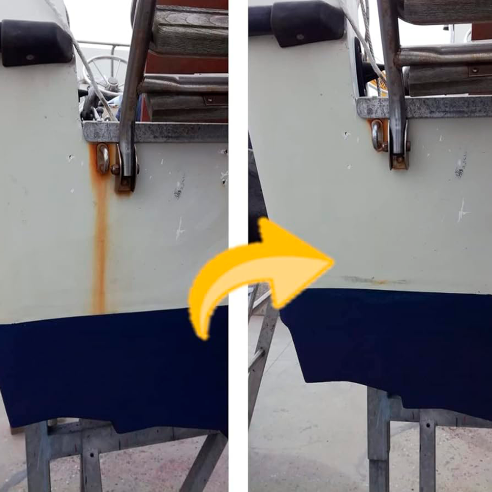 Limpiador para cascos y cubiertas que blanquea facilmente el gelcoat amarillento, limpia mancas de óxido, algas y suciedad en la línea de flotación. Es un limpiador apto en inoxidable.