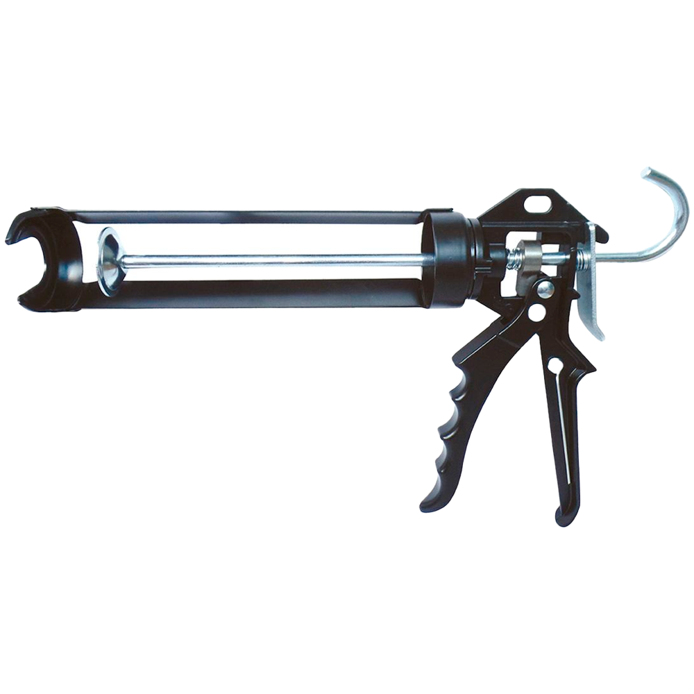 Pistola de silicona para cartuchos de 300 ml. Esta pistola es giratoria, reforzada y se utiliza con productos de viscosidad media.