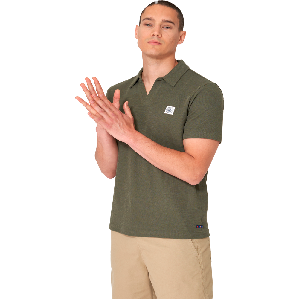 Polo de manga corta para hombre confeccionado por Batela con tejido de algodón 100% jacquard. Este polo cuenta con cuello en pico agregando un toque diferente, elegante y sutil.