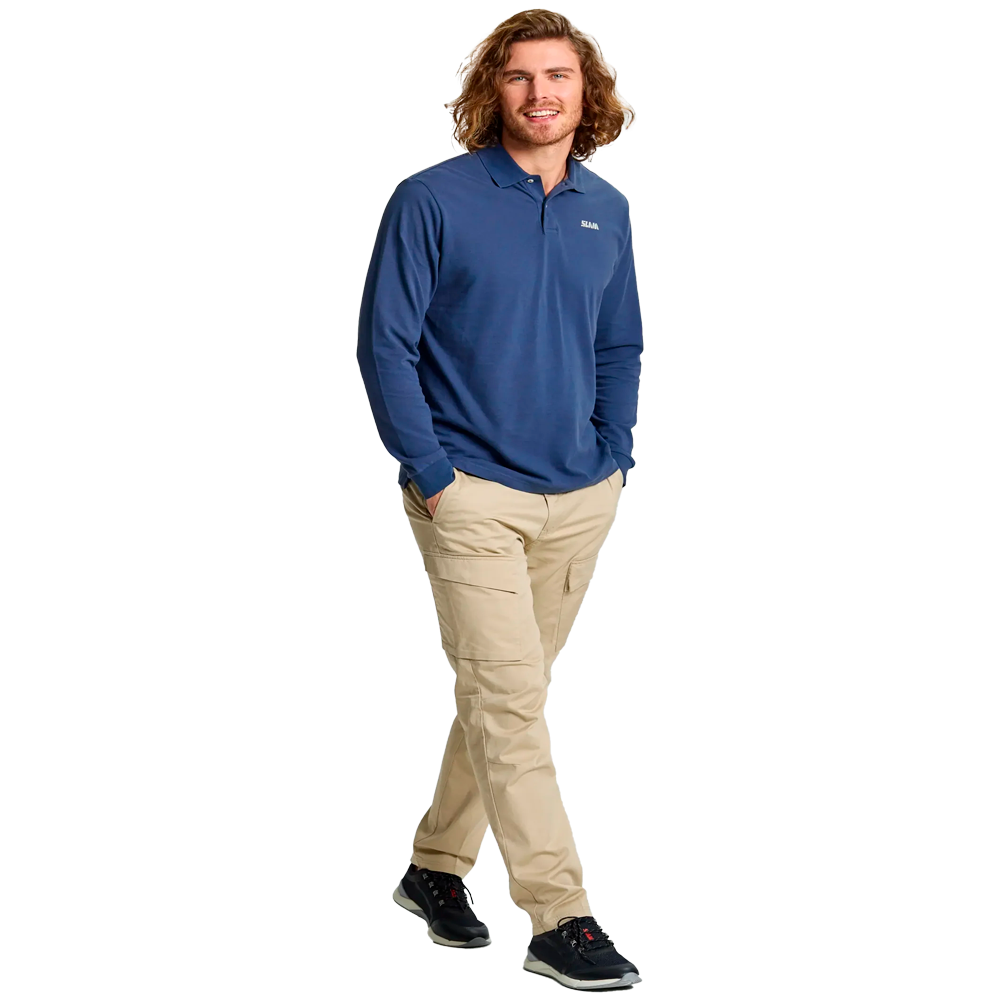 Polo de manga larga para hombre confeccionado en piqué de algodón. Este polo transpirable y ligero cuenta con canalé en cuello y puños además de abertura del cuello con dos botones. Un polo de estilo náutico que no te sacarás durante el otoño-invierno.